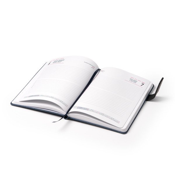 La Agenda KOVEN tamaño A5 está diseñada para el entorno profesional y corporativo, ofreciendo una organización diaria clara y eficiente. Fabricada en poliéster reciclado RPET y con cubierta magnética, transmite una imagen moderna y responsable, perfecta para acciones de merchandising, regalos de empresa y campañas B2B.