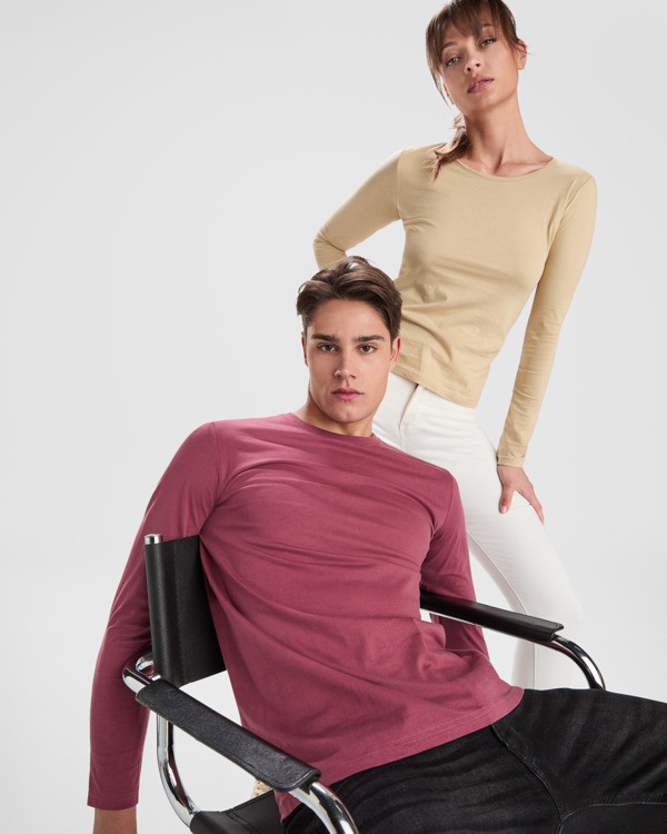 Descubre la Camiseta de Manga Larga EXTREME de Roly, hecha en 100% algodón con diseño tubular en tallas de adulto y costuras laterales en tallas infantiles. Perfecta para un uso diario cómodo y versátil.