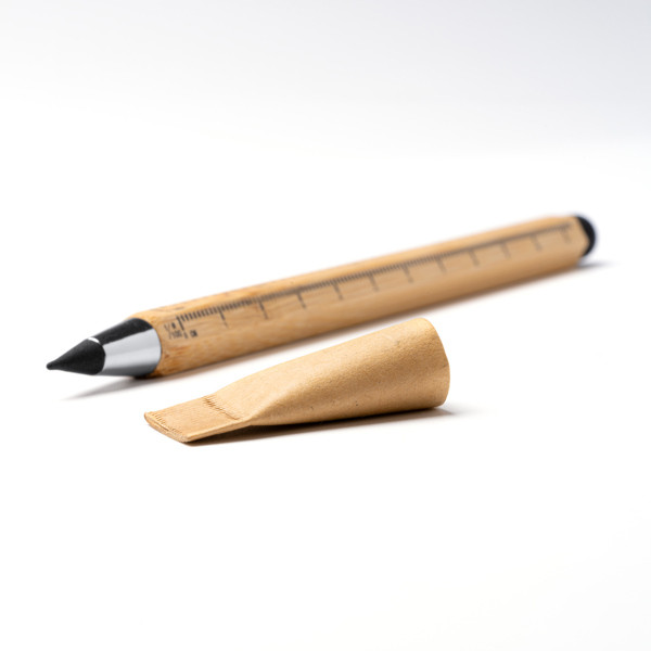 El Lápiz GRAFIX de bambú es una herramienta multifunción sostenible. Con punta de grafito intercambiable, función de regla y puntero táctil, es perfecto para escritura y más. Incluye capucha de cartón.