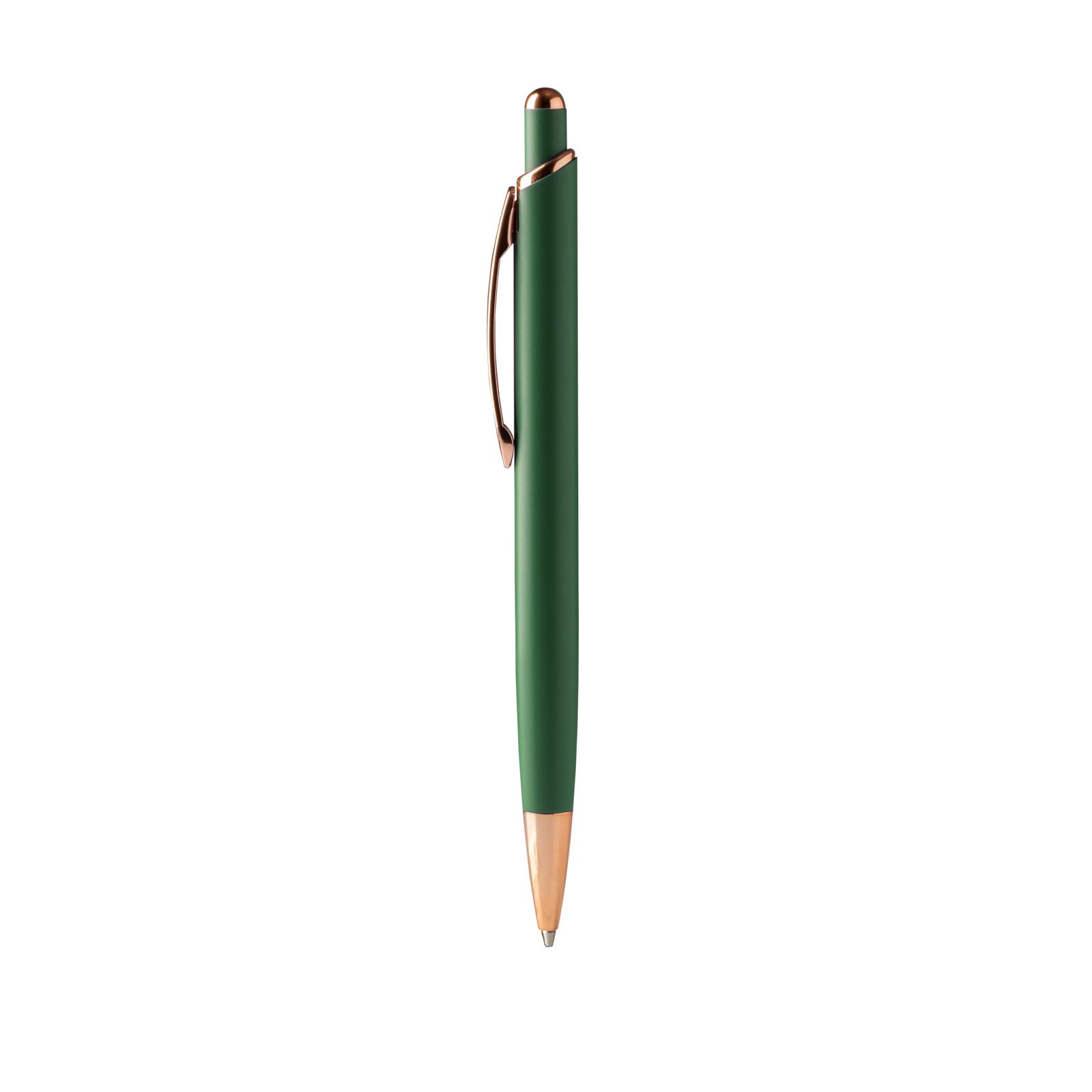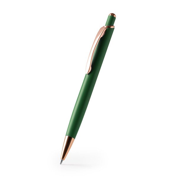 - Diseño Elegante: Bolígrafo pulsador con cuerpo metálico mate y detalles en acabado cobre.