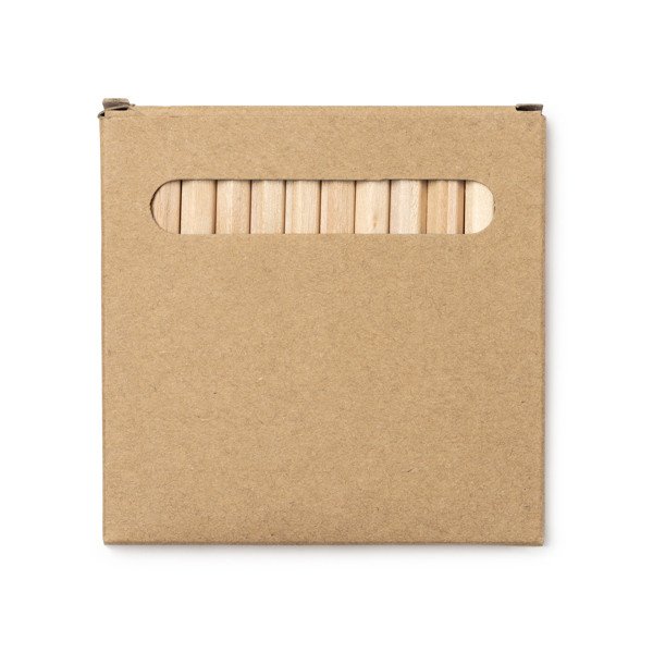 El Set de 12 lápices KOEL es un regalo promocional económico y práctico. Incluye 12 lápices de madera en una caja de cartón reciclado. Los lápices son ideales para escuelas y talleres de manualidades. Personalízalos con tampografía para resaltar tu marca.