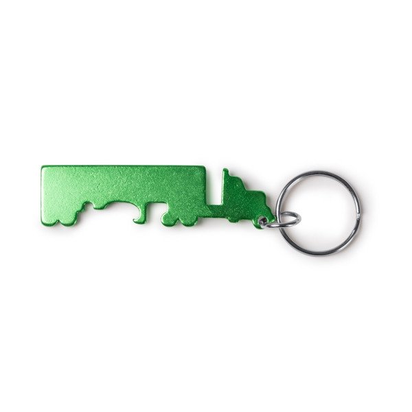 - Diseño: Llavero en forma de camión con abridor de botellas integrado.
