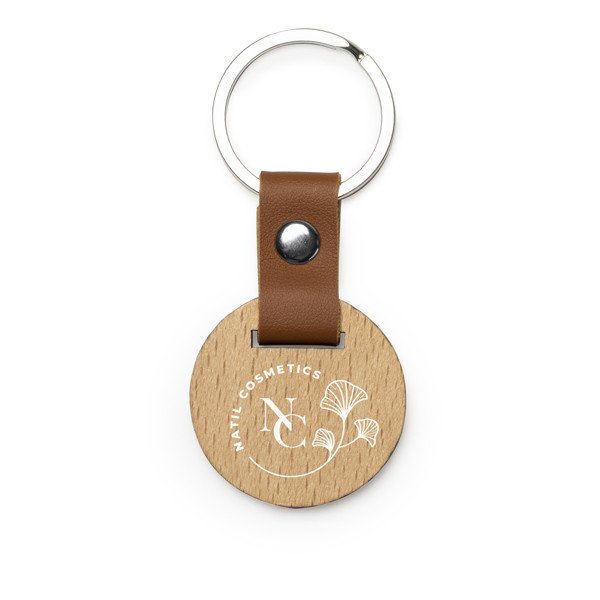 - Llavero de madera natural.