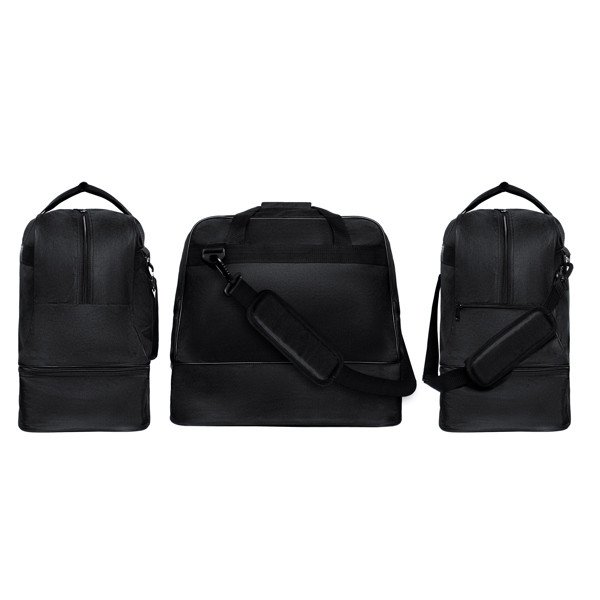 - Bolsillo Zapatillero con Compartimento Extraíble: La bolsa incluye un bolsillo zapatillero independiente con un compartimento extraíble, ideal para mantener tus zapatos separados del resto de tus pertenencias. Esto no solo ayuda a mantener la organización, sino que también es fundamental para mantener la higiene dentro de la bolsa.