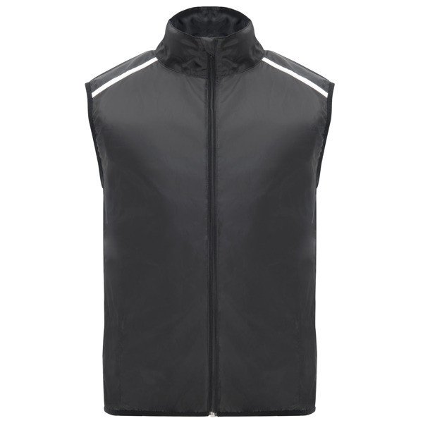 - Chaleco técnico ligero con cremallera frontal y protector de barbilla.