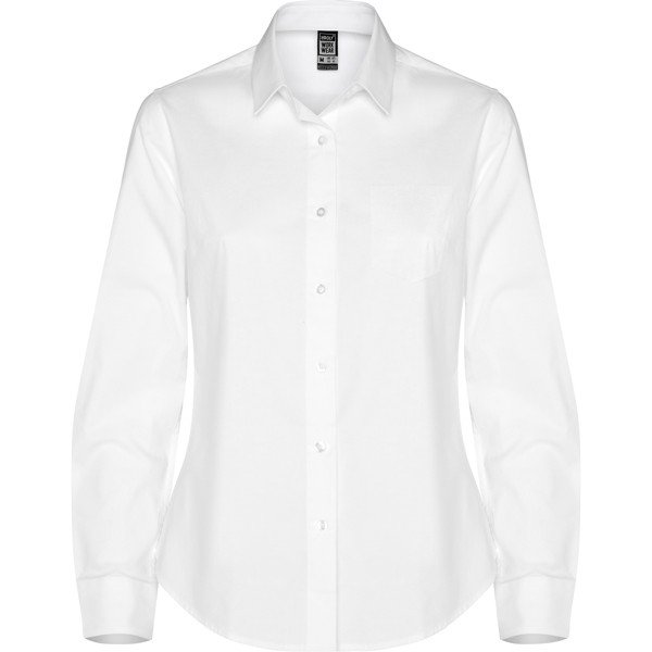 La camisa MOSCU WOMAN combina estilo y comodidad confeccionada en tejido stretch. Con cuello entretelado, pinzas delanteras y en espalda, tapeta central con botones y puños con dos botones para un look elegante. Perfecta para cualquier ocasión.