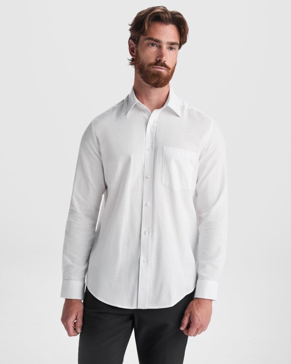La Camisa OXFORD ofrece estilo clásico y comodidad para hombres en entornos laborales. Con cuello esmoquin abotonado, bolsillo en pecho izquierdo y detalles cuidadosos en la tapeta y el puño. Composición: 70% algodón / 30% poliéster, tejido Oxford, 140 g/m².