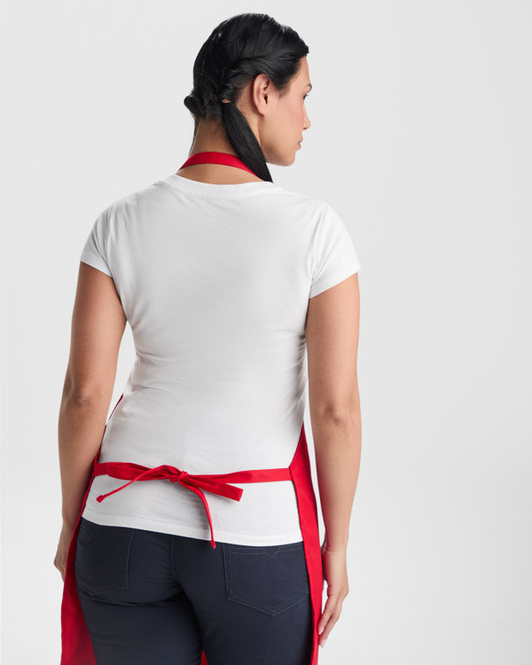 El Delantal RAMSAY ofrece comodidad y funcionalidad para profesionales de la alimentación. Fabricado en sarga de alta calidad, cuenta con cinta a tono en el cuello y cintas laterales para lazada. Medida: 90 x 65 cm.