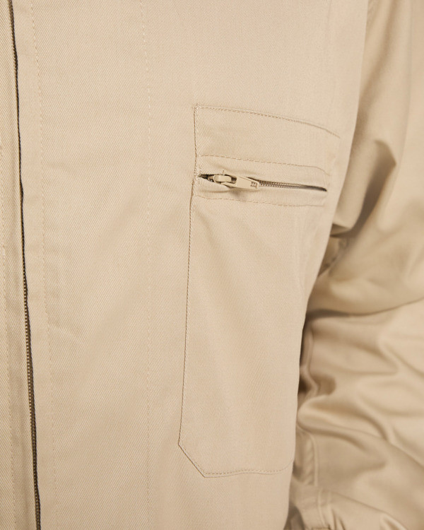 Fabricado en sarga resistente de 65% poliéster y 35% algodón, el Mono Roly JIMMY ofrece un equilibrio perfecto entre durabilidad y confort. Su corte recto y la cremallera central con doble cursor permiten un ajuste sencillo, mientras que los puños elásticos facilitan el uso diario en jornadas intensas.