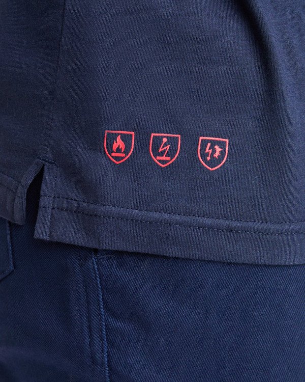El Polo ignífugo SANTANA ofrece protección y estilo en entornos laborales exigentes. Con tejido ignífugo de alta calidad y certificación CE, cuenta con cuello y puños en canalé 1x1, tapeta con 3 botones ocultos y aperturas laterales en el bajo. Ideal para riesgos térmicos y eléctricos.
