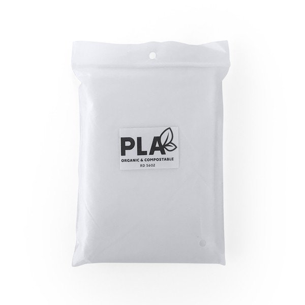 El poncho VOSTOK ofrece protección contra la lluvia de manera sostenible. Fabricado con poliácido láctico (PLA) compostable, talla única para adultos, transparente y con capucha. Presentado en funda individual de PLA.
