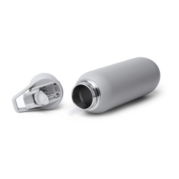 Bidón térmico BULGON de acero inoxidable 304 reciclado con doble pared, pajita de silicona desplegable y sistema antigoteo, ideal para regalos corporativos funcionales.