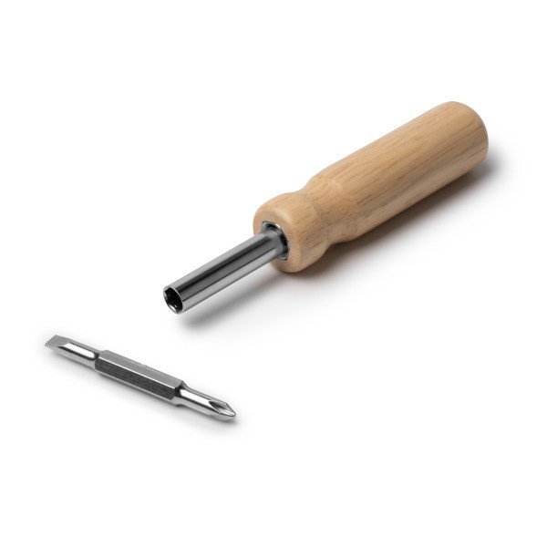 El Destornillador YADOR está diseñado para ofrecer una solución compacta y funcional en tareas de mantenimiento y ajustes básicos. Su combinación de acero inoxidable y mango de madera aporta resistencia y un diseño cuidado, convirtiéndolo en una excelente opción para regalos corporativos técnicos y merchandising de empresa con valor añadido.