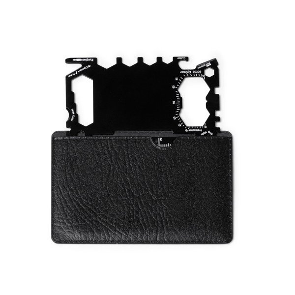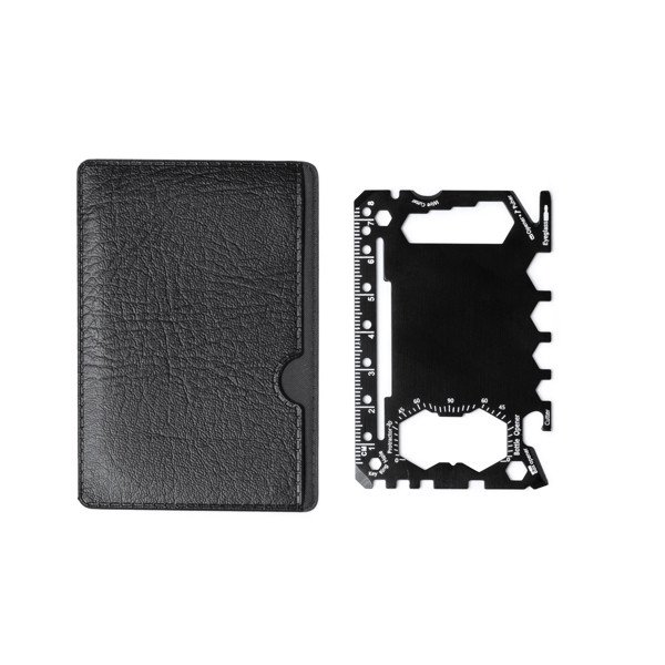 La Multiherramienta TRADIE es un conjunto completo con 17 funciones integradas, como cuchillo, destornillador, abrebotellas y transportador de ángulos. Compacta y resistente, con medidas de 9,4 cm de longitud, 0,2 cm de ancho y 6,4 cm de grosor. Se presenta en una funda de PU elegante para un transporte conveniente.