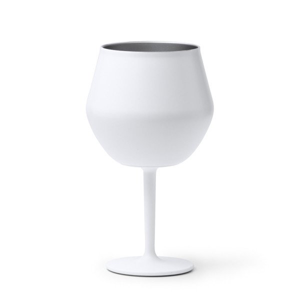 El Vaso FRADES 2 en 1 de acero inoxidable se convierte en copa gracias a su soporte extraíble, ideal como regalo corporativo elegante.