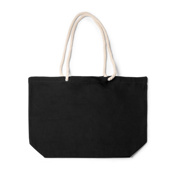 asas de estilo náutico de 90 cm, también en algodón, aportan un toque distintivo y garantizan un transporte cómodo en el hombro o en la mano.