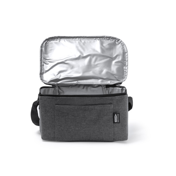 0La Nevera BISMAR de poliéster reciclado RPET es perfecta para mantener tus alimentos frescos sobre la marcha. Con bolsillo frontal e interior isotérmico y una capacidad de 3 litros, es práctica y funcional. Incluye una cinta de transporte ajustable.