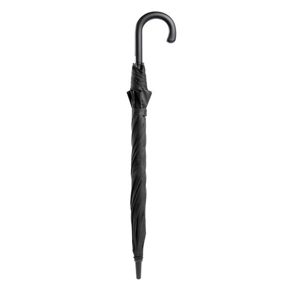 El paraguas OSAKA combina estilo y durabilidad. Fabricado en tejido pongee 190T resistente al agua, cuenta con apertura automática y mango de acabado suave. Sus varillas de fibra de vidrio con sistema anti-viento y terminaciones reforzadas aseguran su resistencia en días ventosos.